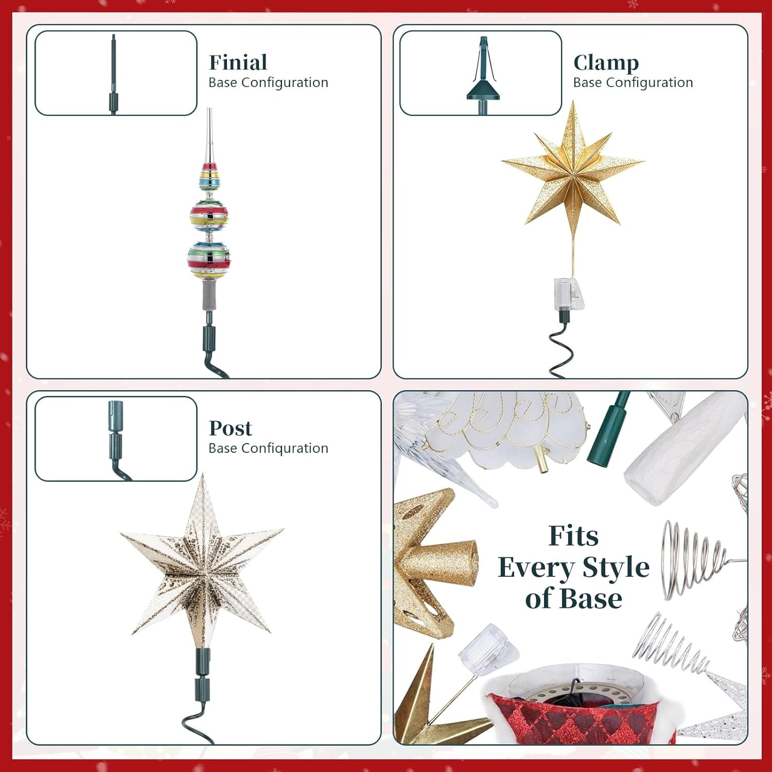 ✅ Compatibility: Fits most Christmas tree toppers (stars, angels, finials, spirals).