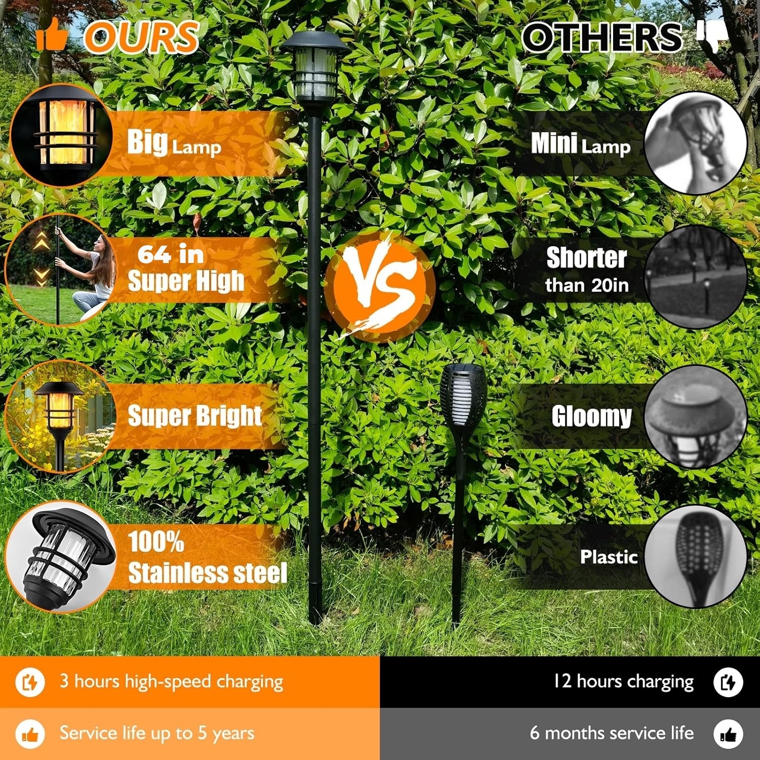 Bring bold, flickering ambiance to your garden, patio, or walkway—no plugs or wires required! These extra-tall solar torches light up the night with warm, realistic flame effects and durable charm that stands strong in any season.✨