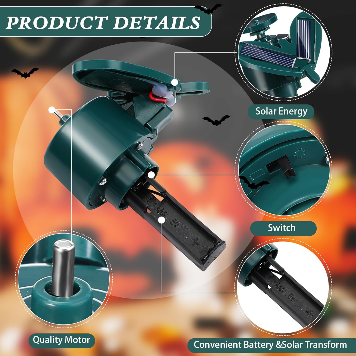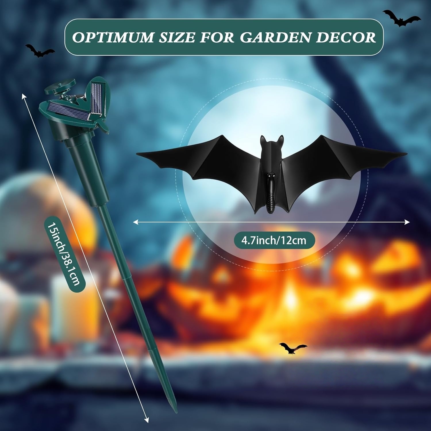 ✅ Perfect Size – Each bat measures about 5.9" with a total stake height of 15". They flutter and spin under the sun, and with battery backup (battery not included), they keep moving even on cloudy days or at night.