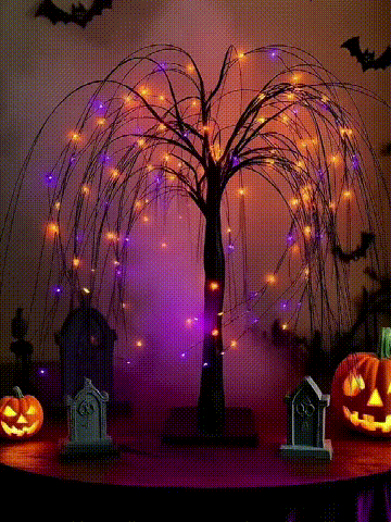 The easiest way to add glowing Halloween magic to your home, party table, or haunted corner. With eerie purple & orange lights and cascading willow branches, this tree brings cozy chills and gothic vibes—no effort required! 🕯️🎃