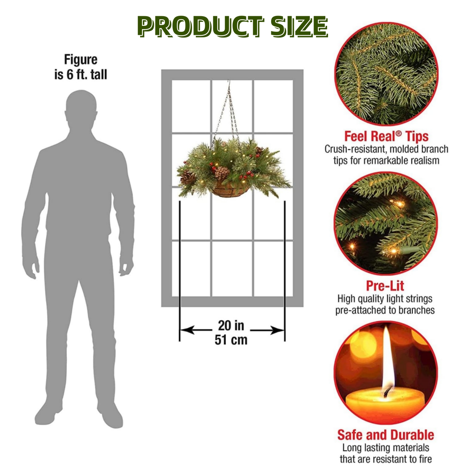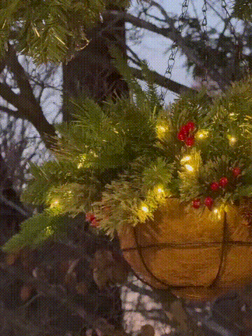 The easiest way to bring classic Christmas charm to your front door, porch, or windows. This pre-lit hanging basket overflows with festive greenery, pinecones, berries, and soft LED lights—no watering or decorating required! ❄️✨