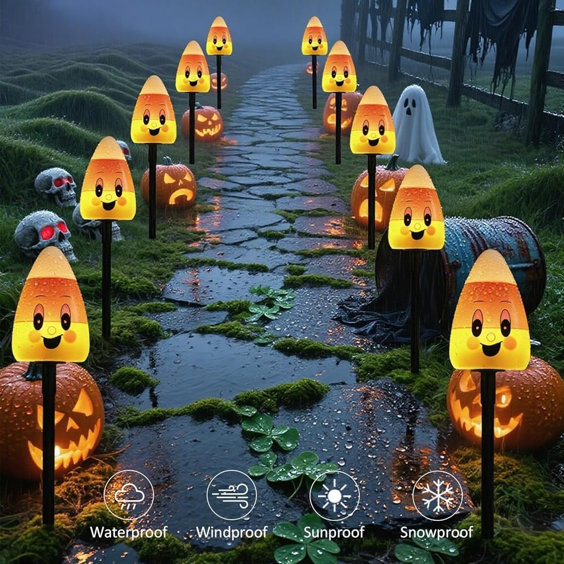 ✅ Halloween-Ready Design – Bright candy corn style with happy faces adds festive charm that kids and neighbors will love.