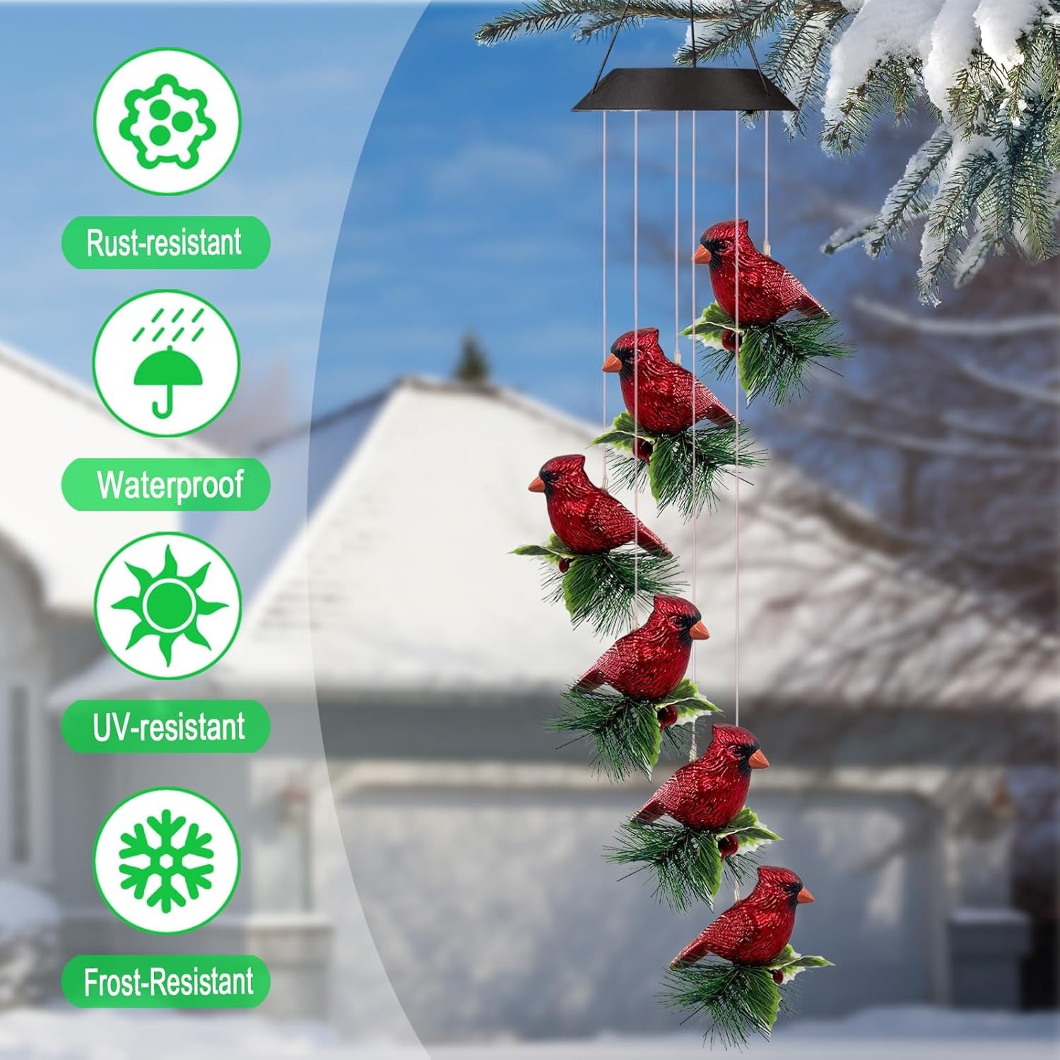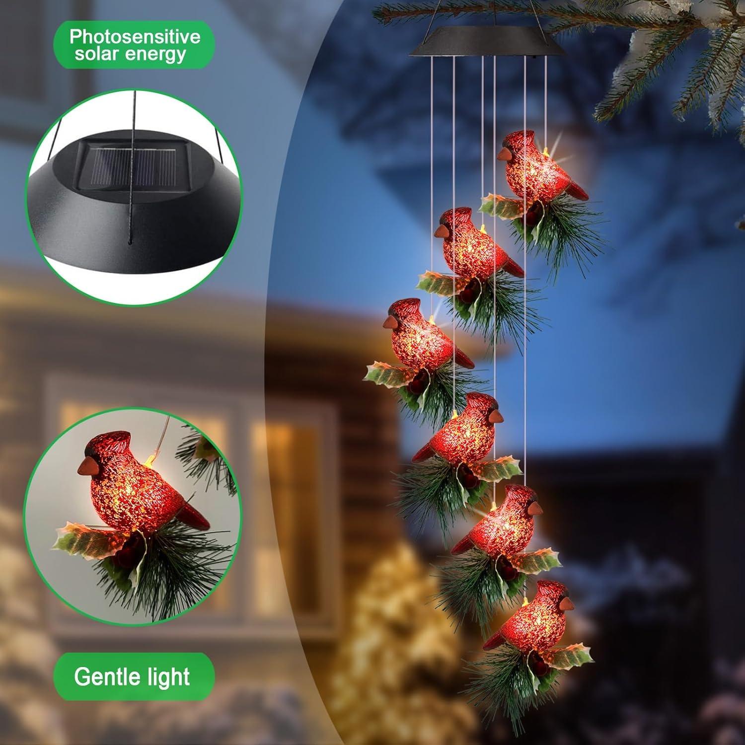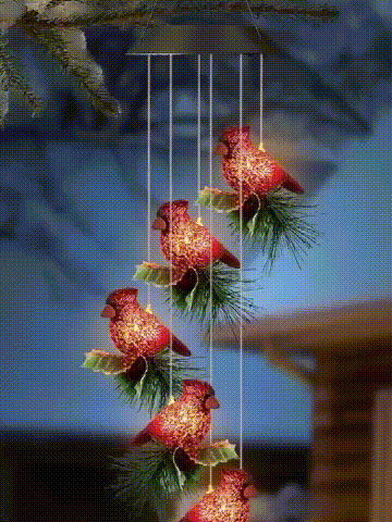 Bring warmth, beauty, and a touch of holiday spirit to your garden, porch, or patio with these glowing cardinal wind chimes. Powered by the sun, they light up automatically at night, creating a cozy and festive atmosphere. 🎄✨